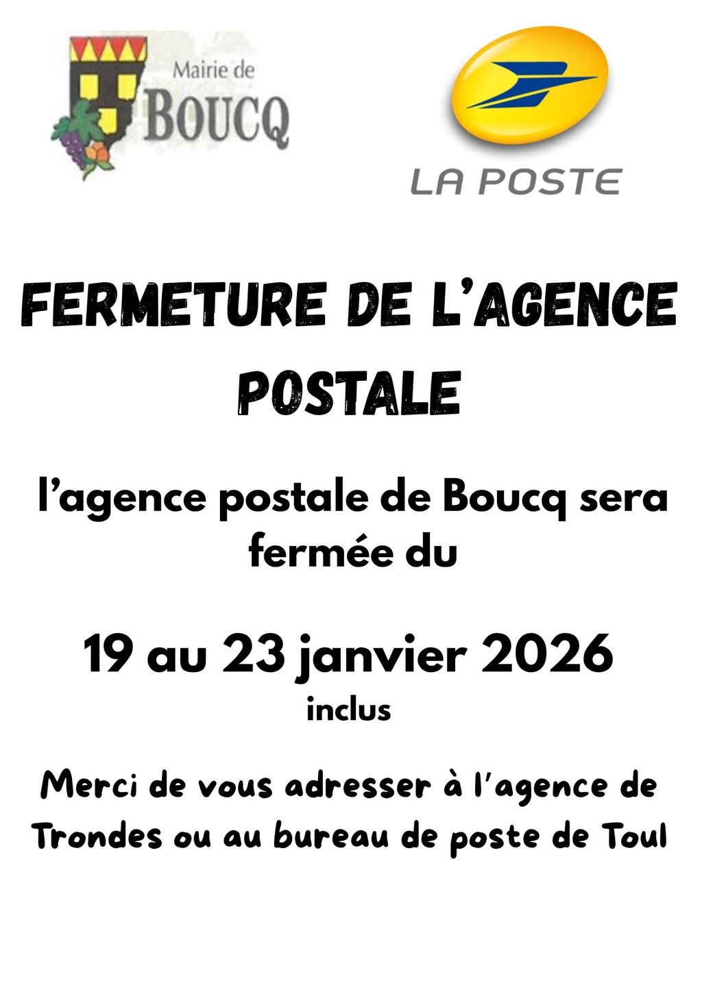 FERMETURE DE L'AGENCE POSTALE BOUCQ DE BOUCQ