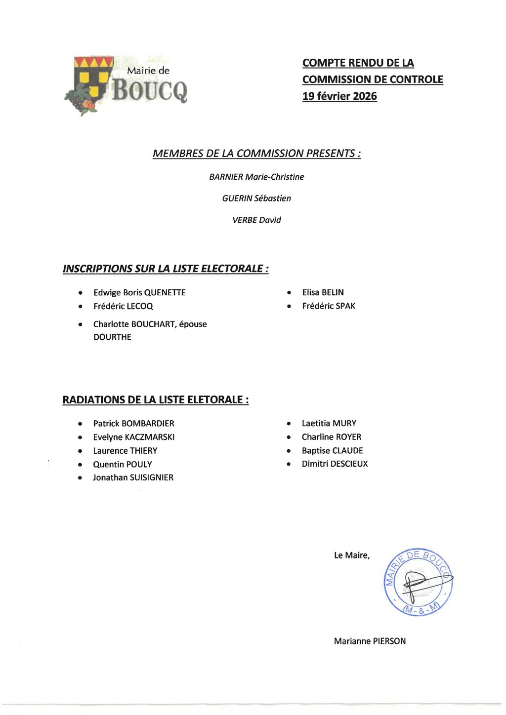 Pour votre parfaite information, vous trouverez sur le lien ci-dessous le Compte Rendu de la Commission de Contrôle des Listes Électorales qui s'est réunie le 19 février 2026.