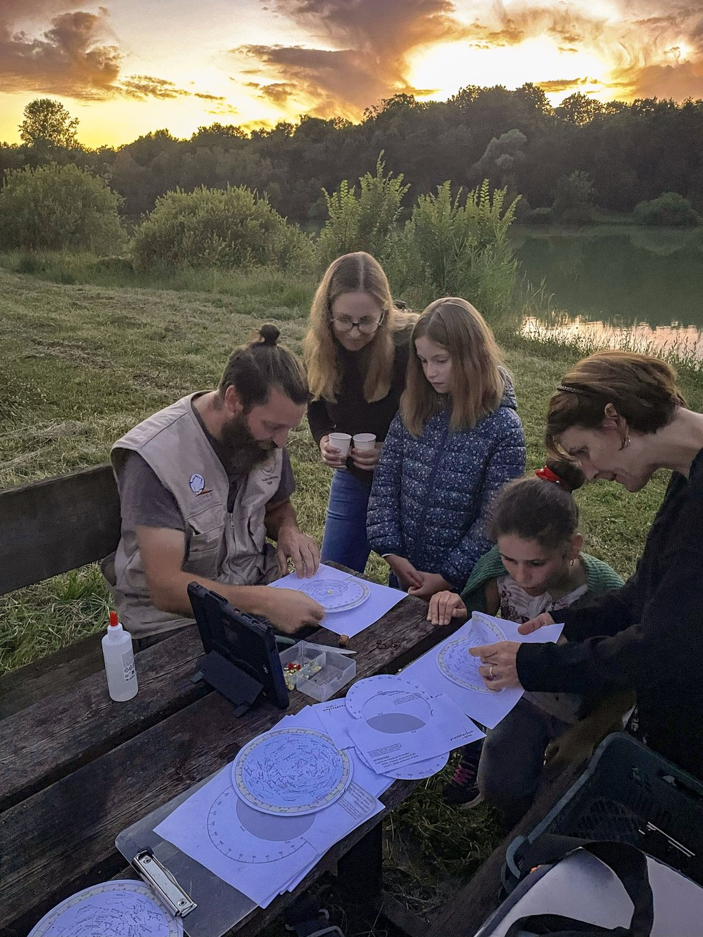La soirée débutera par un tour de l’étang, suivi de la fabrication d’une carte du ciel et de l’observation des étoiles.